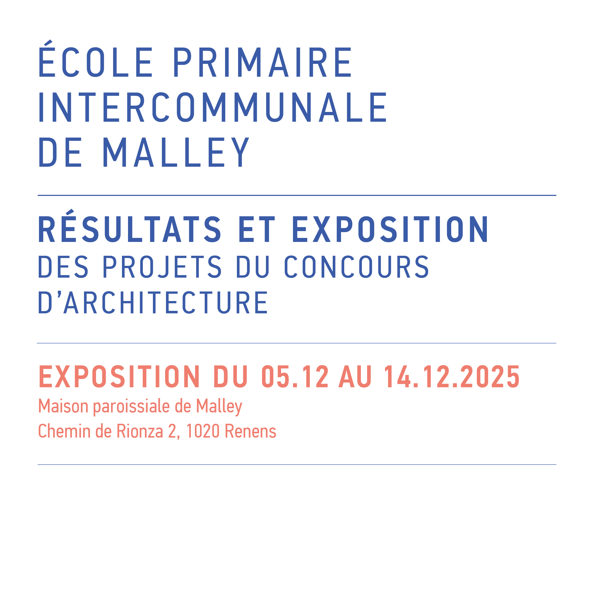 L’exposition des résultats du concours d’architecture pour la futures école primaire intercommunale de Malley présentent les 61 projets architecturaux, dont le lauréat. Gratuite et ouverte à toutes et tours, ces exposition accueille la population et les intéressé.e.s. à la Maison paroissiale de Malley (chemin de Rionza 2, 1020 Renens)...